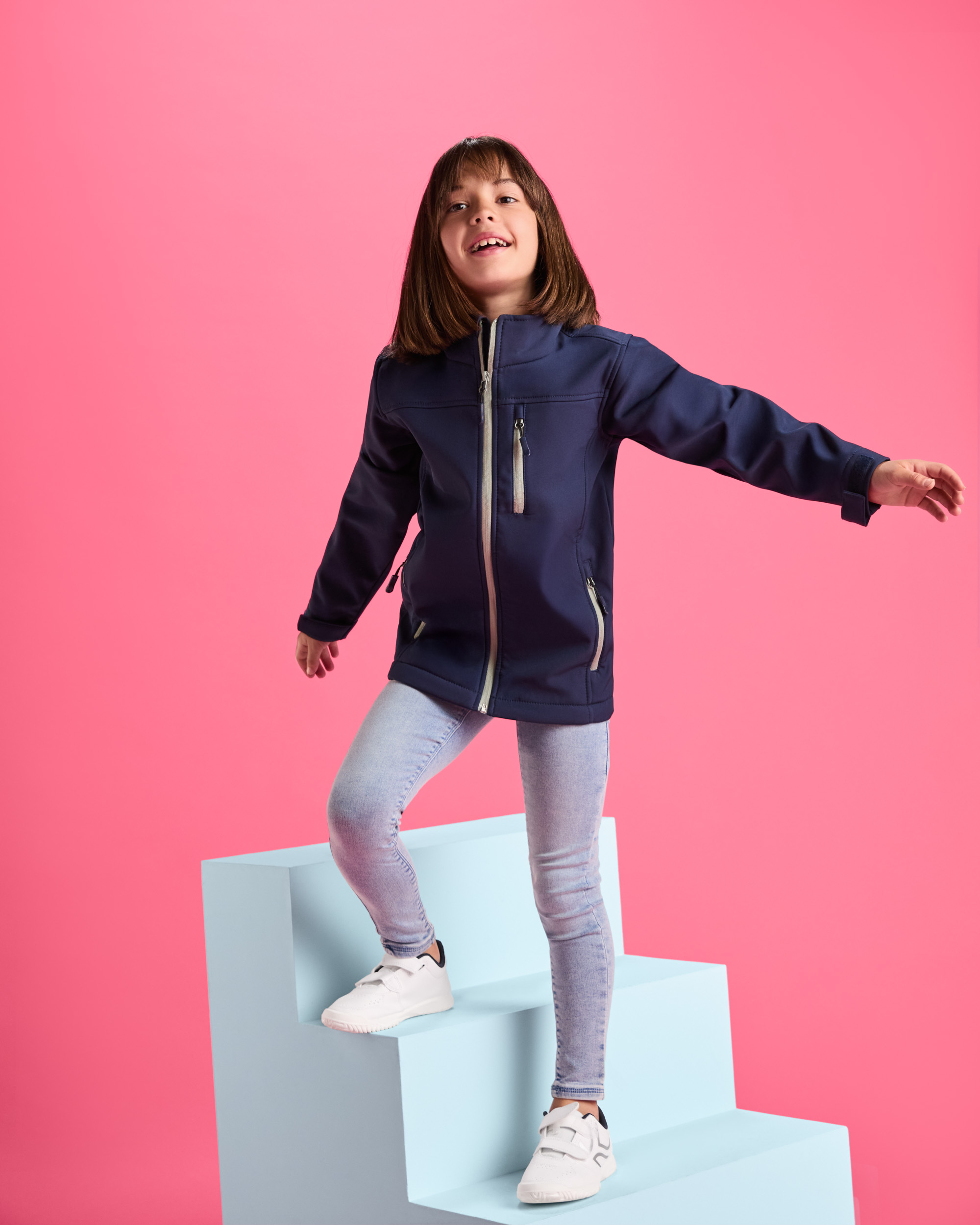 Chaqueta softshell de 2 capas con cremallera frontal invertida a contraste. Repelente al agua y resistente al viento. Interior en tejido micropolar. Dos bolsillos laterales y uno en pecho izquierdo con cremalleras invertidas a contraste. Protector de barbilla del mismo tejido invertido. Ajustadores laterales en el interior en tallas de adulto.