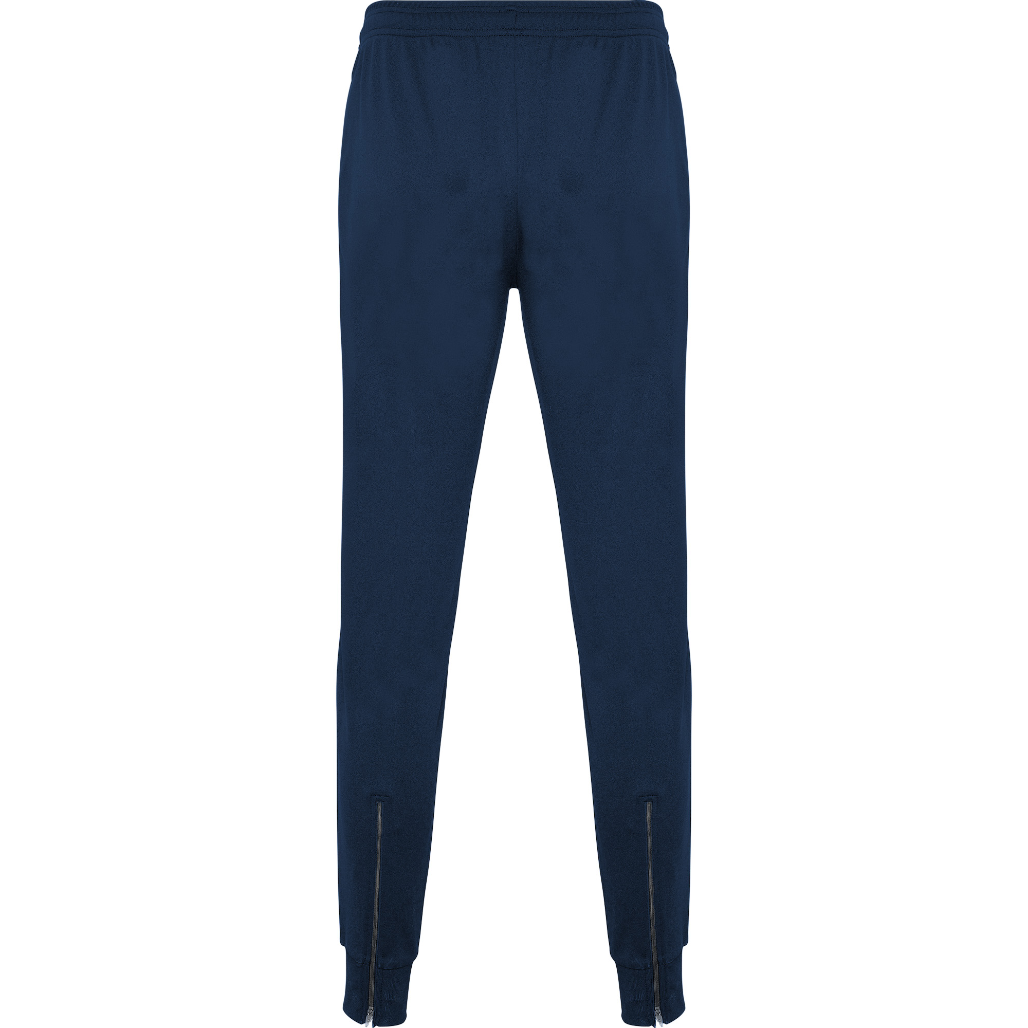 Pantalón largo de entrenamiento corte pitillo. Cinturilla engomada con cordón ajustable interior. Bolsillos laterales con cremallera en tallas de adulto. Puños en rib 1×1 y cremalleras.