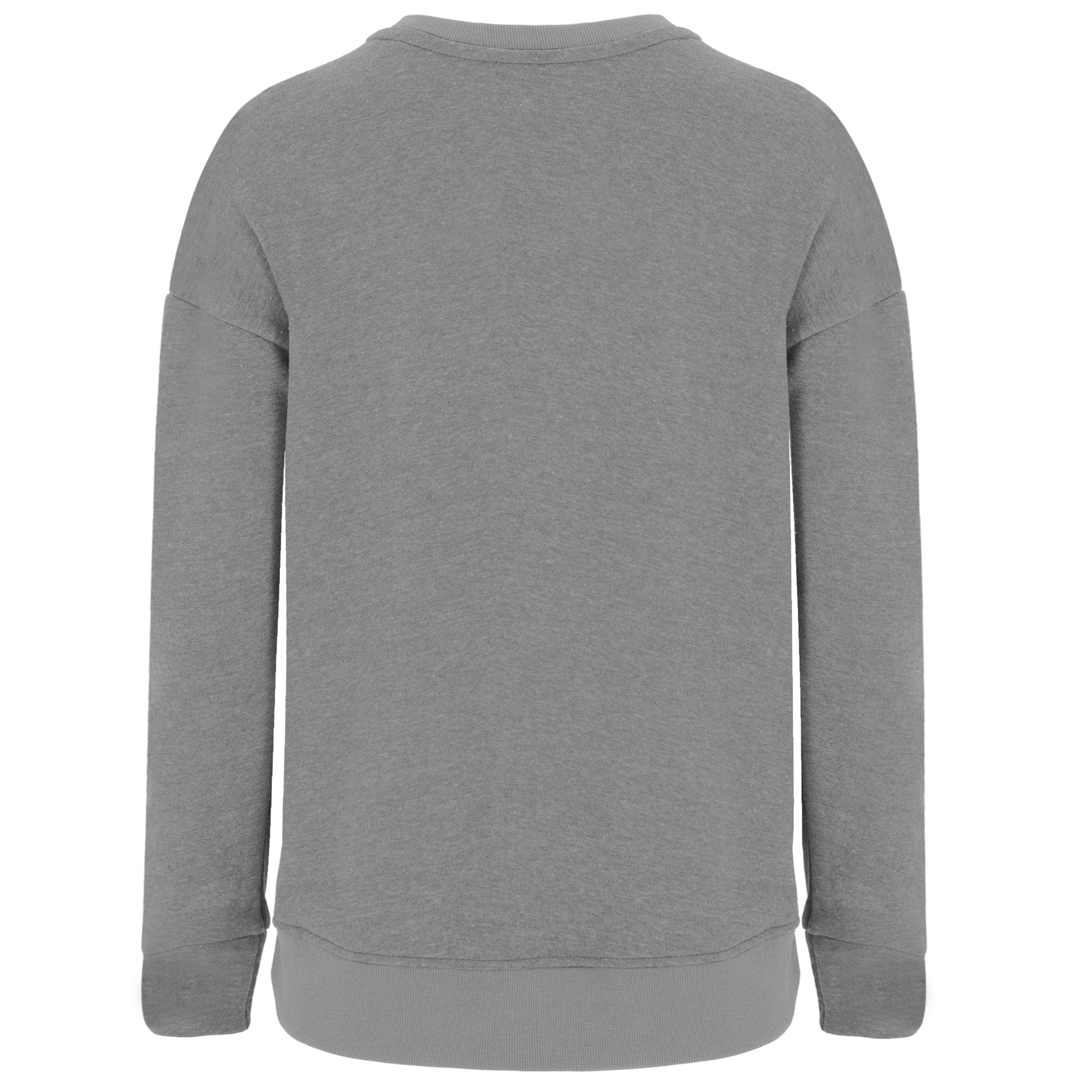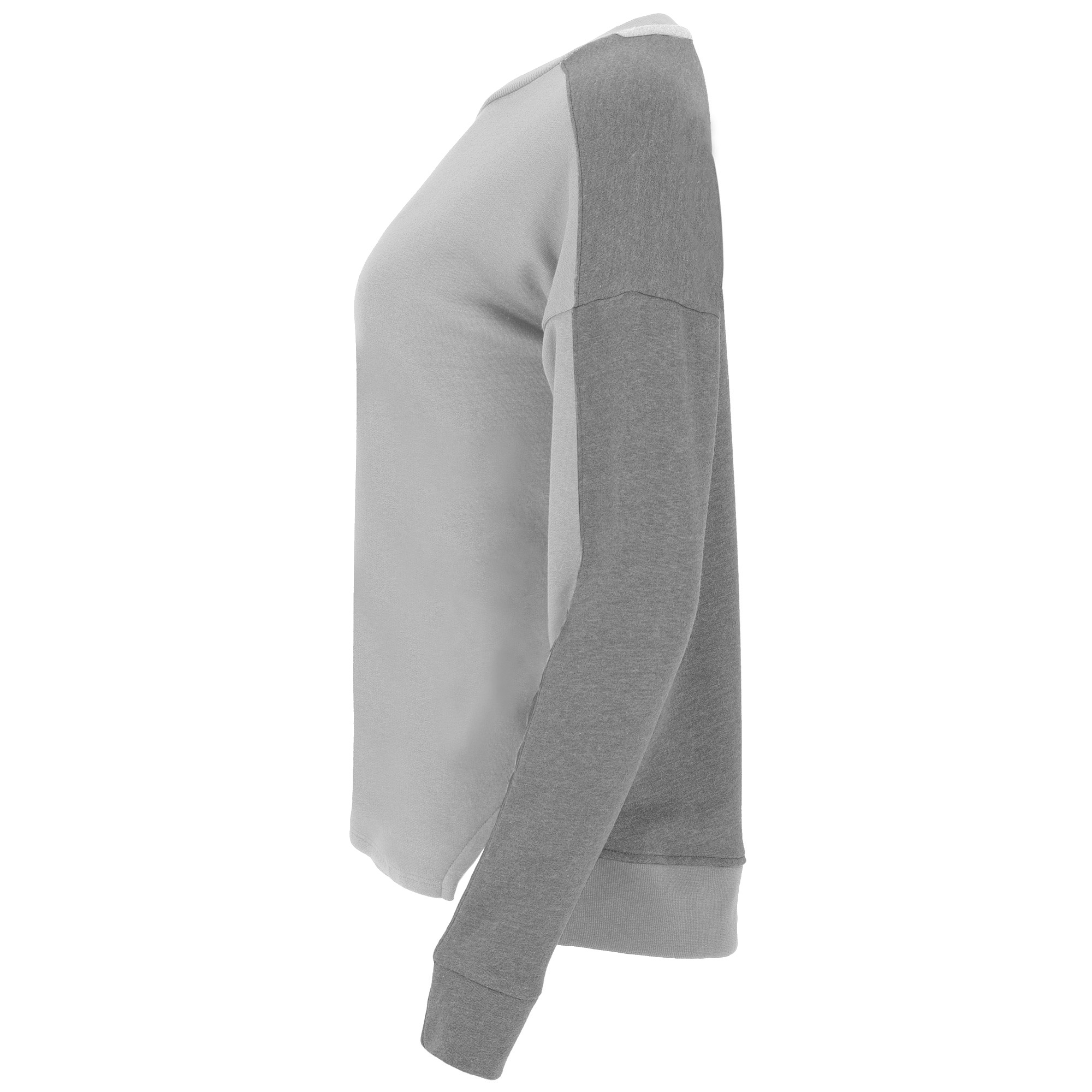 Sudadera de mujer, combinada con dos tejidos y dos colores. Cuello, mitad del puño y bajo espalda en tejido canalé 2×1. Puños con corte asimétrico. Bajo con aperturas laterales y espalda más larga que el delantero.
