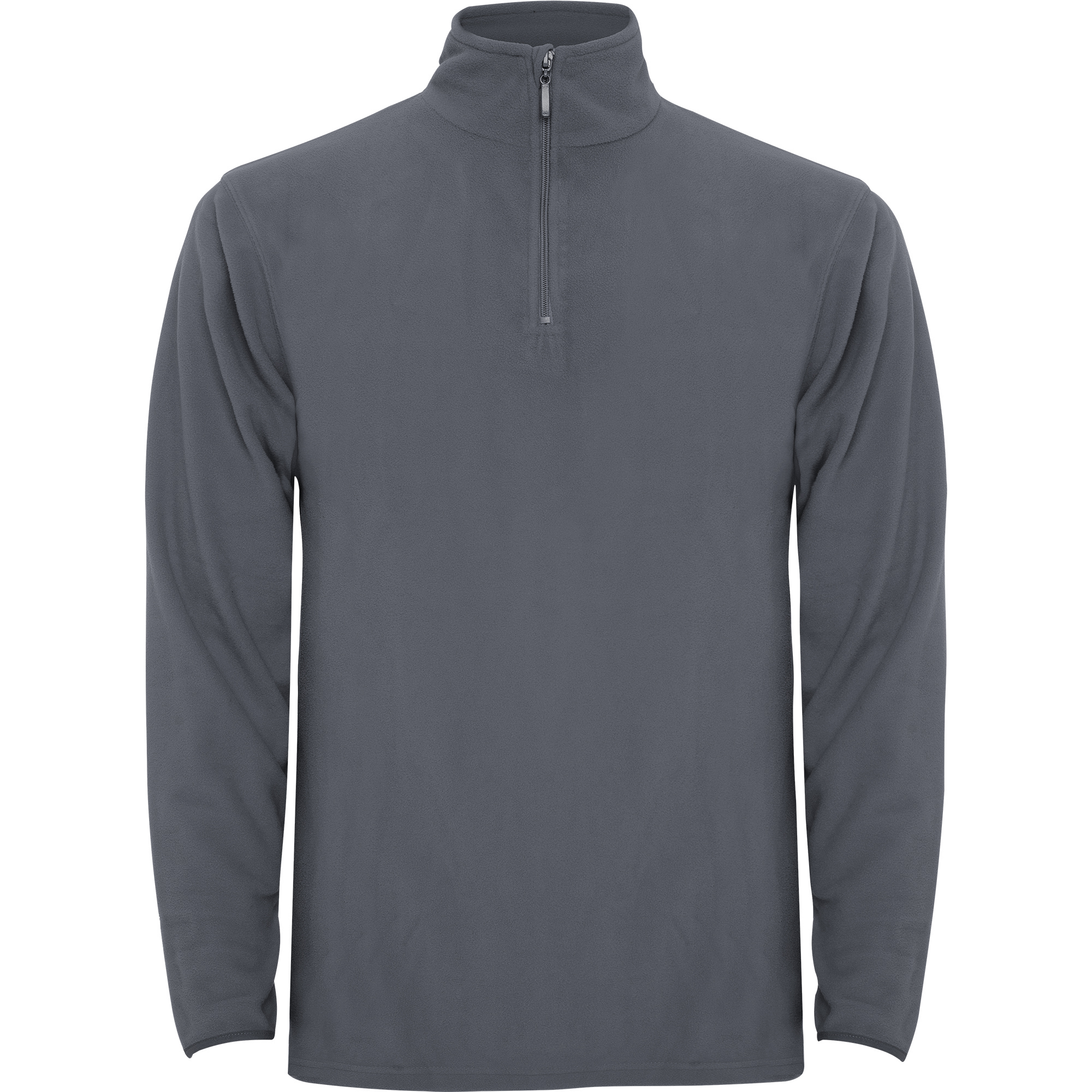 Sudadera micropolar de media cremallera y cuello alto. Puños con vivo elástico. Protector de barbilla en el mismo tejido.