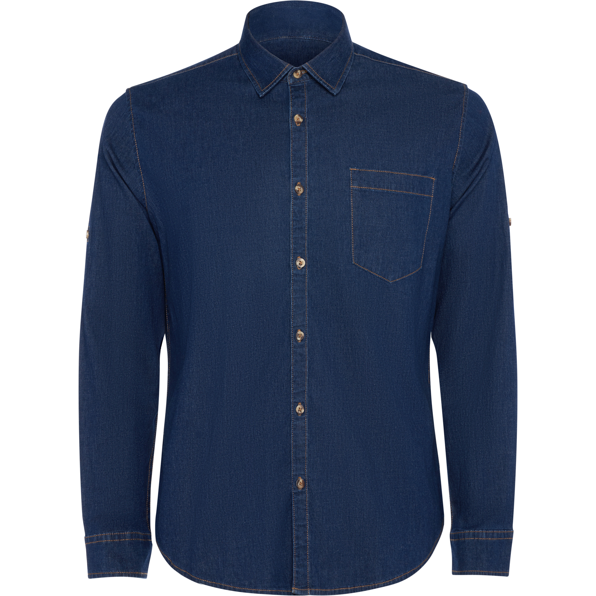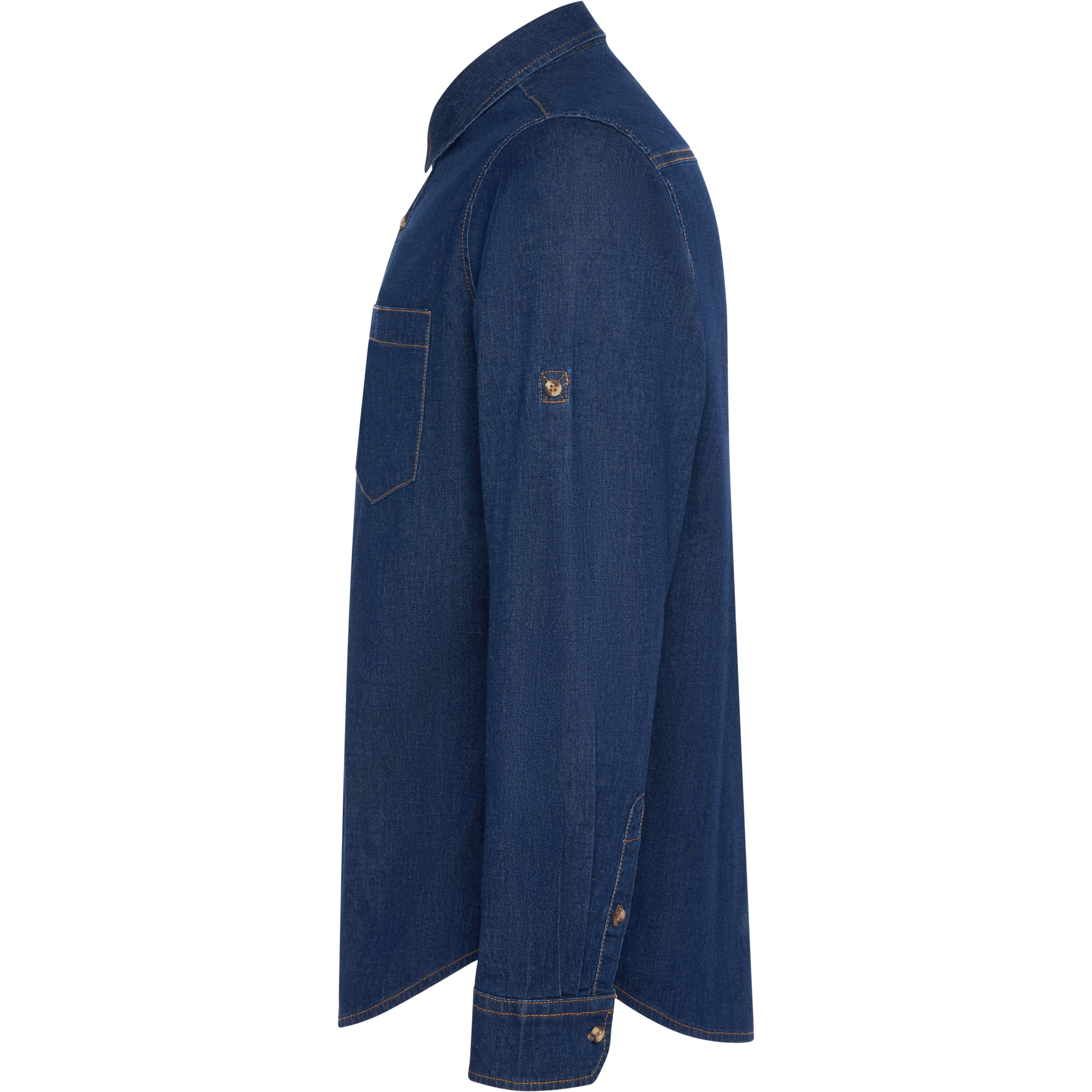 Camisa vaquera manga larga con trabilla ajustable.