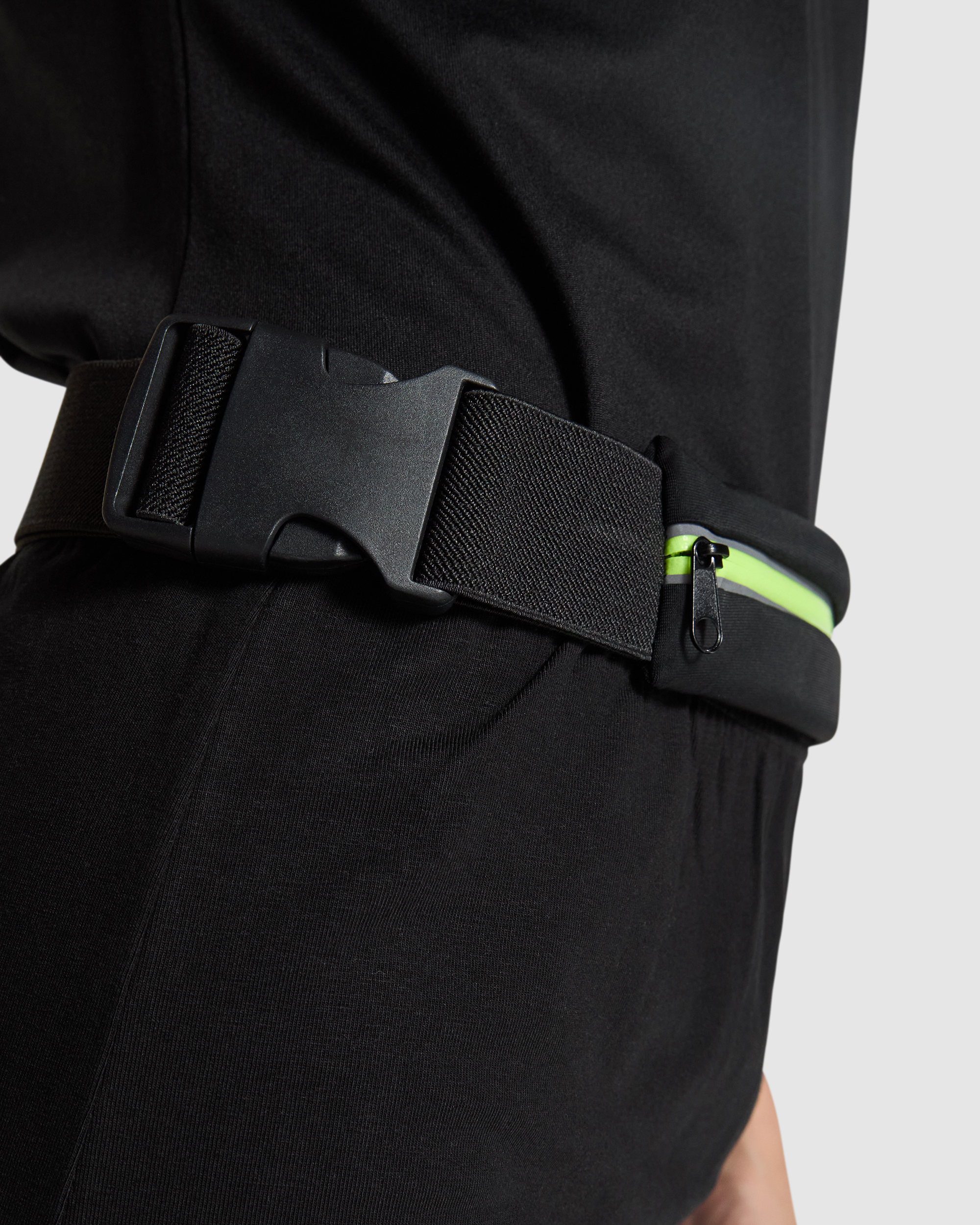 Cinturón deportivo multiusos de tejido elástico impermeable. Cuenta con cremallera reflectante y salida para cables, además de cierre con hebilla. Ideal para almacenar tus pequeños enseres mientras realizas deporte.