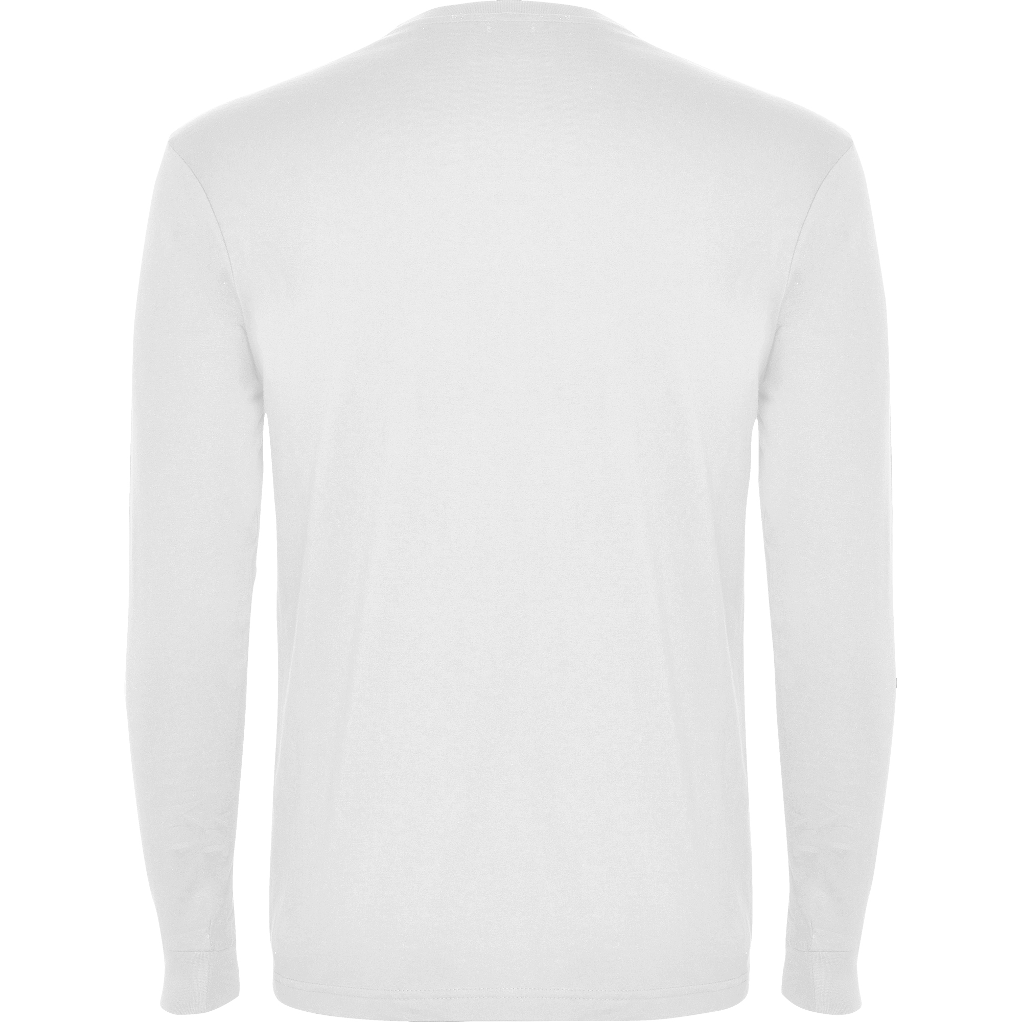 Camiseta de manga larga tubular en tallas de adulto y costuras laterales en tallas de niño. Cuello redondo y puños en canalé 1×1 (cuello 4 capas). Cubrecosturas en cuello del mismo tejido.