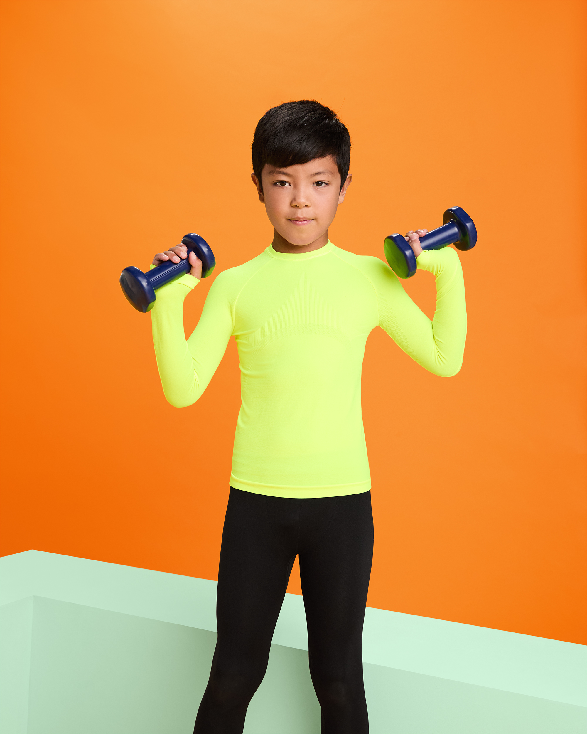 Camiseta térmica sin costuras. Diseño adaptable al cuerpo. Cuello redondo del mismo tejido.
