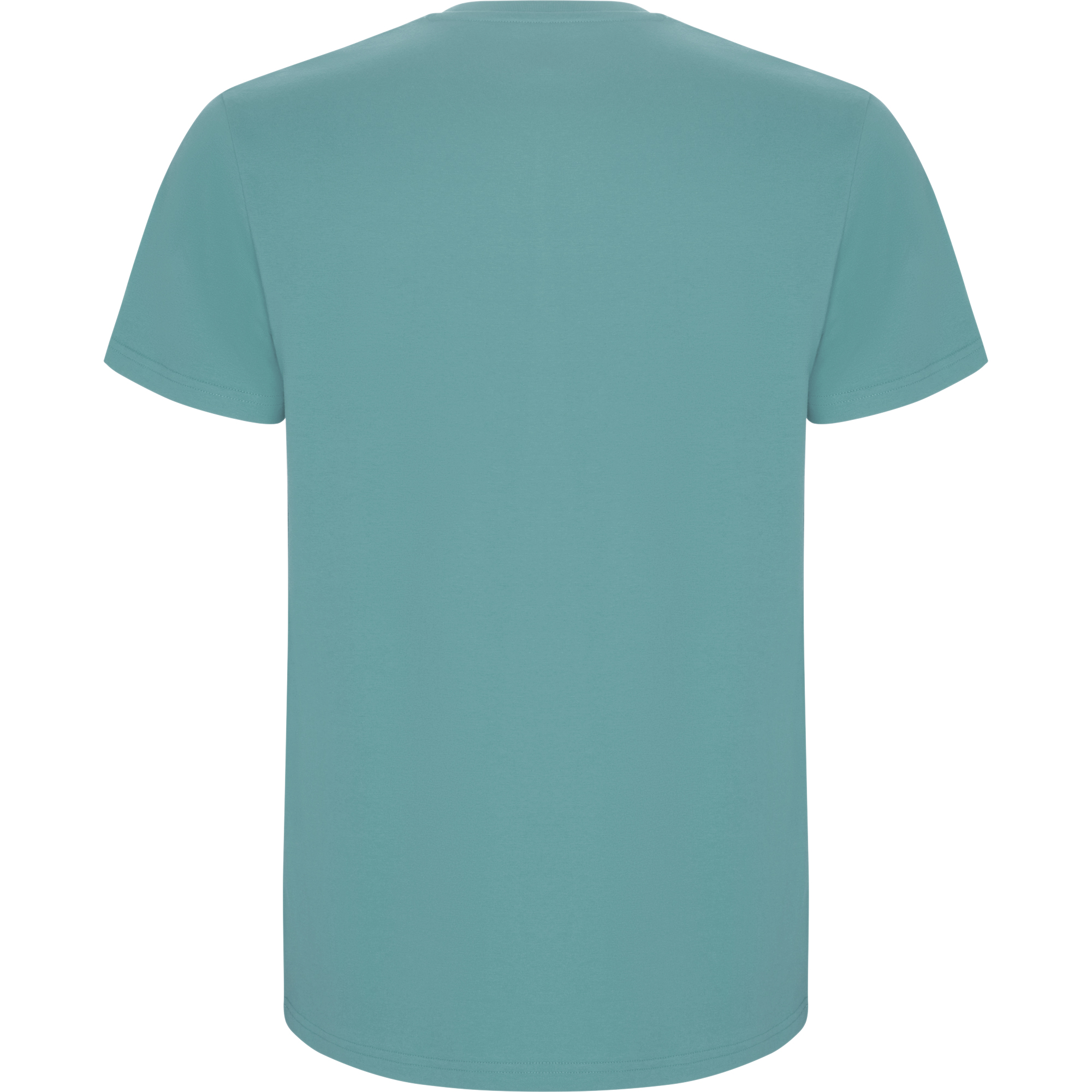 Camiseta de manga corta tubular en tallas de adulto y costuras laterales en tallas de niño. Cuello redondo en canalé 1×1. Cubrecosturas en cuello del mismo tejido.
